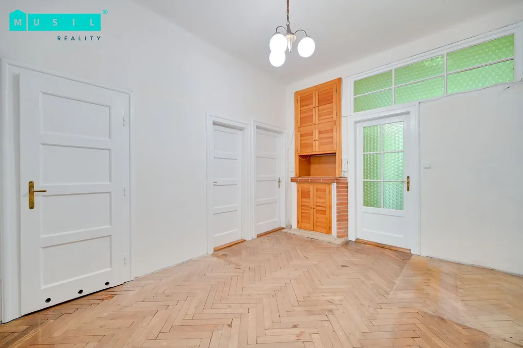 Byt je situován ve třetím patře revitalizovaného cihlového domu s výtahem a je dispozičně řešen jako 4+1. Hledáte velký rodinný byt, který má své and #34;Genius Loci and #34;, tedy nezaměnitelnou kouzelnou atmosféru a novostavby Vám nic neříkají? Tak je tato ojedinělá nemovitost určena právě Vám. Bytová jednotka se skládá z prostorné vstupní chodby, tří samostatných prostorných pokojů, kuchyně, tří komor, balkónu, koupelny a samostatného WC. K bytu náleží také prostorný sklep v suterénu domu. Vytápění a ohřev vody je zajištěno plynovým kotlem, okna jsou v jedné části nemovitosti kastlová a v druhé jsou již vyměněna za nová Euro okna. Interiérové dveře jsou původní dřevěné a na podlahách jsou koberce.
