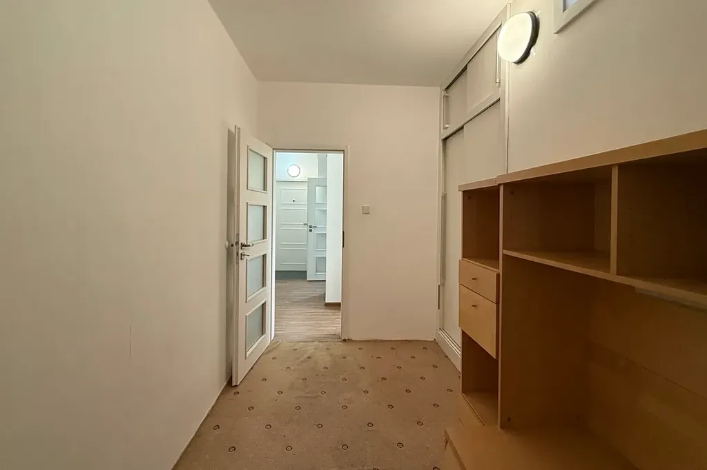 Ložnice je aktuálně rozdělena příčkou, díky tomu tak vznikl další menší pokoj, který může sloužit jako samostatná ložnice či pracovna. Dispozice bytu je tak nyní prakticky řešena jako 3+1 a nabízí větší variabilitu využití prostoru pro rodinu i práci z domova.