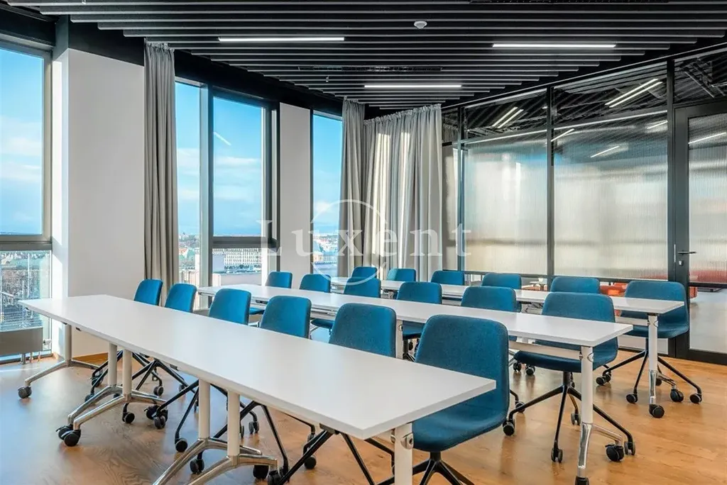 Součástí jsou obsáhlé reprezentativní relaxační zóny, open space prostor pro práci nebo neformální schůzky. Samozřejmostí je možnost využívání několika zasedacích místností v ceně nájmu. Vám i Vašim klientům jsou k dispozici plně vybavené kuchyňky s neomezenou konzumací kávy, čaje a vody.
