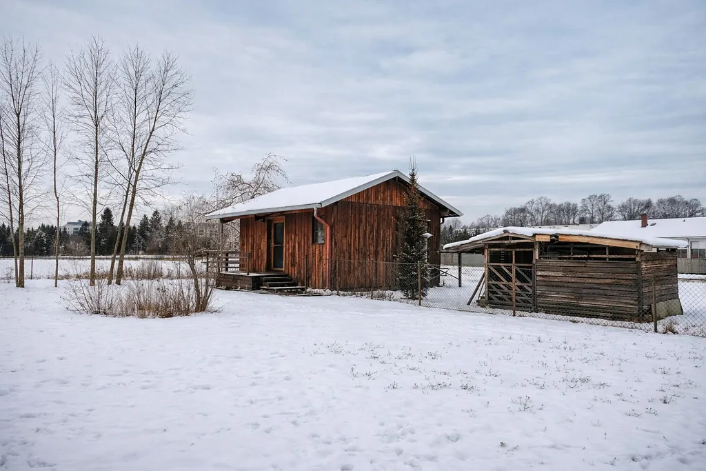 • nová dřevěná chata s elektřinou a zastřešenou verandou