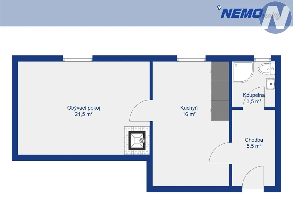 V bytě je zároveň příprava na akumulační kamna a v domě je zaveden plyn s možností jeho připojení do bytu, což do budoucna nabízí další varianty vytápění.