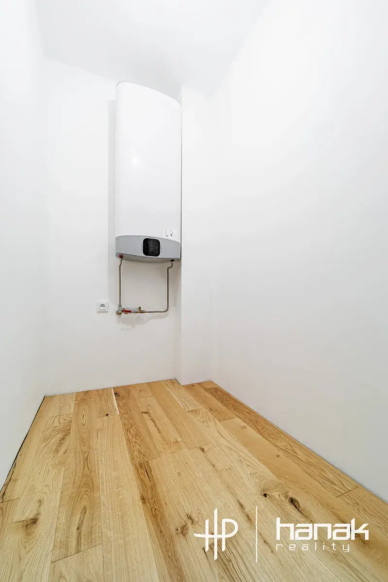 Jednotka je zcela nová. Při výstavbě byly použity kvalitní materiály a stavební prvky. Byt je vybavený podlahovým vytápěním, LED osvětlením, el. před-okenními žaluziemi, kvalitní keramikou a také linkou. Součástí bytu je klimatizační jednotka. Podlahy jsou dřevěné v kombinaci s dlažbou.