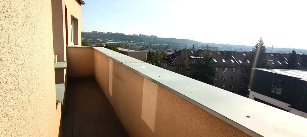 Byt má krásný výhled na Brno, je to nově vybudovaná nástavba v Černých Polích na Merhautově.