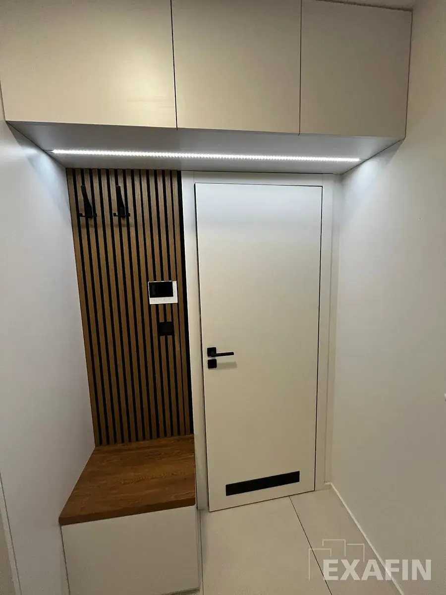Byt disponuje velkým oknem do směřovaným do zeleně a klidné zástavby. Je částečně vybaven: kuchyňskou linkou se spotřebiči (myčka, mikrovlnka, trouba, indukčni varná deska, lednice), vestavěná skříň v předsíni - uvnitř pračka, smart světla s možností změny barvy či teploty osvětlení. Jsou instalovány garnyže na záclony.