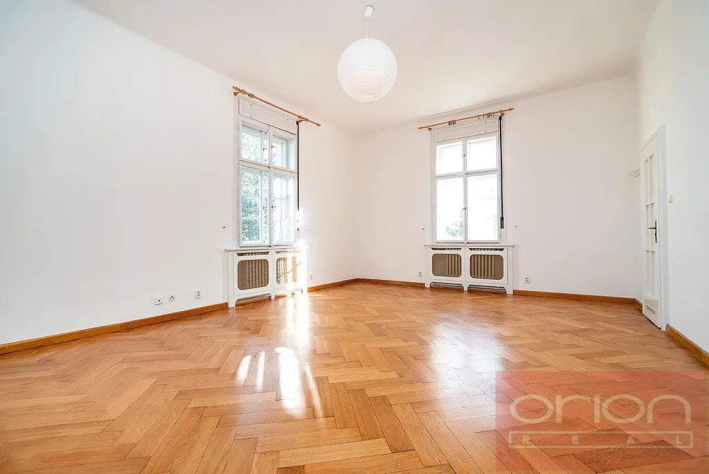 Nabízíme k pronájmu exkluzivní, nezařízený byt 6+1 o celkové ploše 274 m² s terasou, situovaný v 1. patře kompletně zrekonstruované reprezentativní neobarokní vily v prestižní rezidenční čtvrti v Praha 6 - Střešovice (Ořechovka). Byt disponuje vstupní halou, velkorysým prostorem se vstupem na terasu o velikosti 26 m² s výhledem do pečlivě udržované zahrady, prostorným obývacím pokojem s jídelnou, plně vybavenou kuchyní, čtyřmi ložnicemi, dvěma koupelnami, komorou, prádelnou s pračkou a samostatnou toaletou.