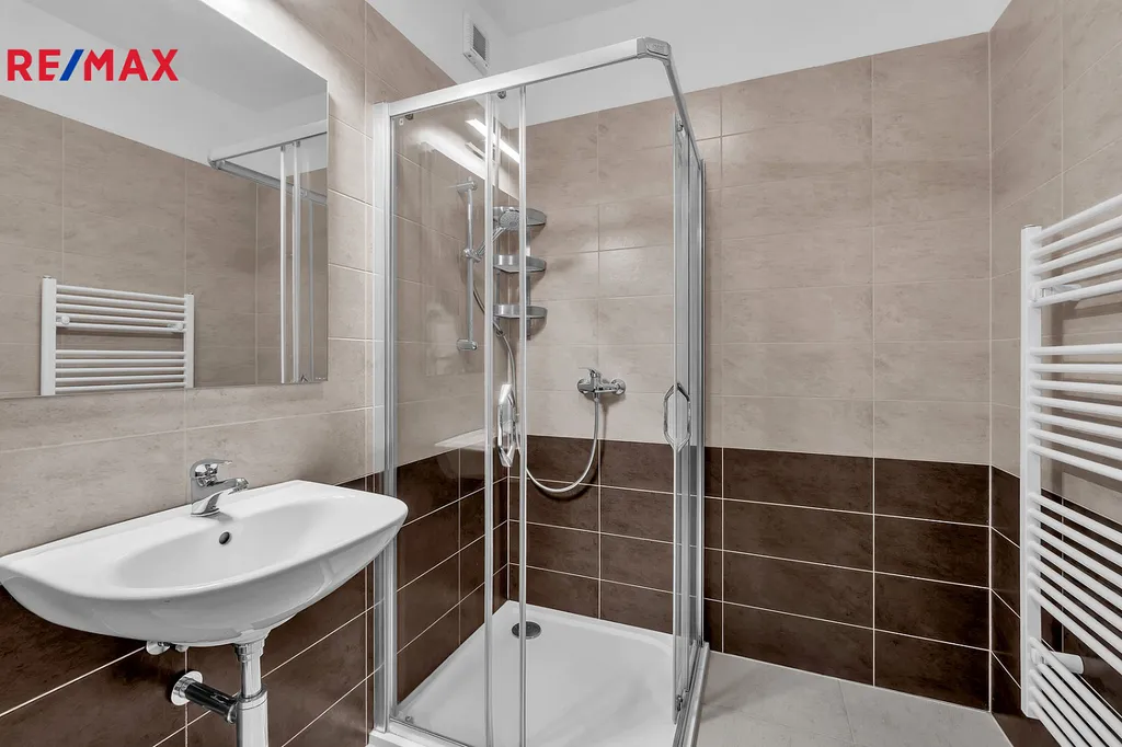V bytě nalezneme i prostornou komoru a šatnu. Koupelna je vybavena sprchovým koutem. WC je samostatné. K bytu náleží sklepní kóje. Vytápění i ohřev teplé vody jsou částečně řešeny fotovoltaikou, čímž se výrazně snižují náklady na vytápění.