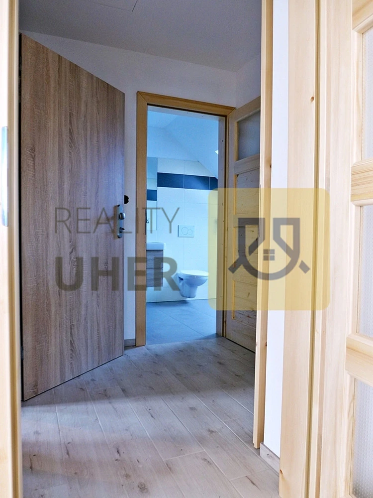 Okna situována do tří světových stran (S, V, Z) s výhledem do zeleně i na město směrem k Pražské bráně. Dům po kompletní rekonstrukcí a veškeré rozvody i společné prostory jsou nové. V bytě pak nová plastová okna (střešní jsou poplastovaná dřevěná VELUX), dveře i zárubně z masivu, nové omítky, na podlahách dlažba. Kuchyňská linka v nadstandardním provedení, vybavena kombinovaným sporákem s troubou ELEKTROLUX, lednicí a digestoří. Podlahové elektrické vytápění řízené termostaty se třemi samostatnými okruhy pro obytné části a koupelnu. Koupelna je vybavena sprchovým koutem, pračkou, a navíc úsporným topením (žebřík), které lze v letních měsících využít třeba jako sušák na prádlo. Výhodný 20 hodinový noční tarif. V nájmu zahrnuty poplatky za odpady, sdílený internet, STA a pravidelný úklid společných prostor. Měsíční poplatky jsou zálohy na vodu a elektřinu pro max 2 osoby.