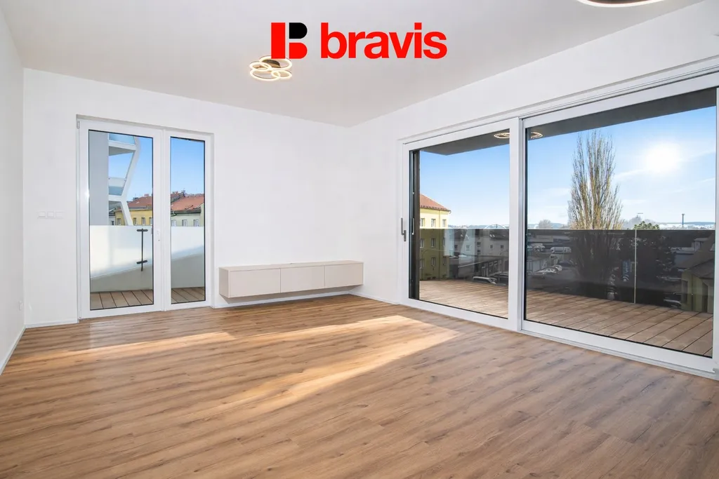 Ve výhradním zastoupení majitele nabízíme k dlouhodobému pronájmu zcela nový byt o dispozici 3+kk v moderní novostavbě MERIDIEM v Brně – Komárově.