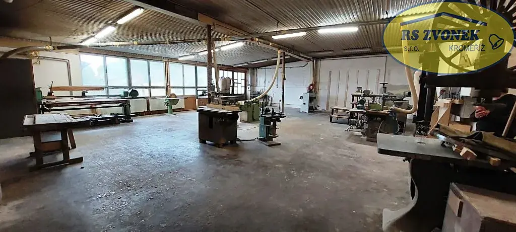 Exkluzivně Vám nabízíme prodej výrobního objektu bývalé stolárny s možností vybavení stroji pro stolaře, v Hradisku cca 5 km od Kroměříže. V areálu se nachází dvě výrobní haly o velikostech 200 m2 a 90 m2, velká kancelář s vybavenou kuchyní, sociálním zázemím, šatnou pro zaměstnance, kuchyní s jídelnou pro zaměstnance, technickou místností a velkým dvorem (517 m2) přístupným z druhé strany budovy. Výška stropu 3,3 m. Veškeré inženýrské sítě k dispozici, vytápění ÚT na tuhá paliva. Příkon elektrické energie 50A jistič. Bezproblémový příjezd pro os. i NA auta. Parkování před objektem. PENB G - majitelem nedoložen.