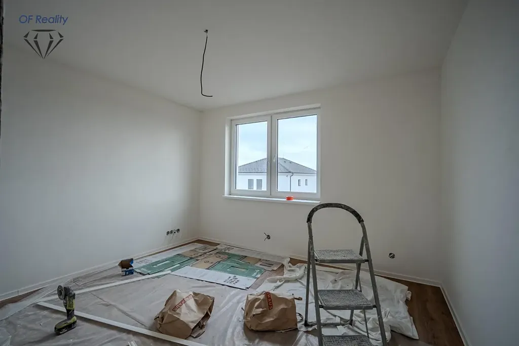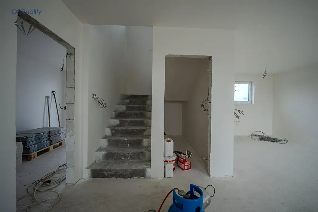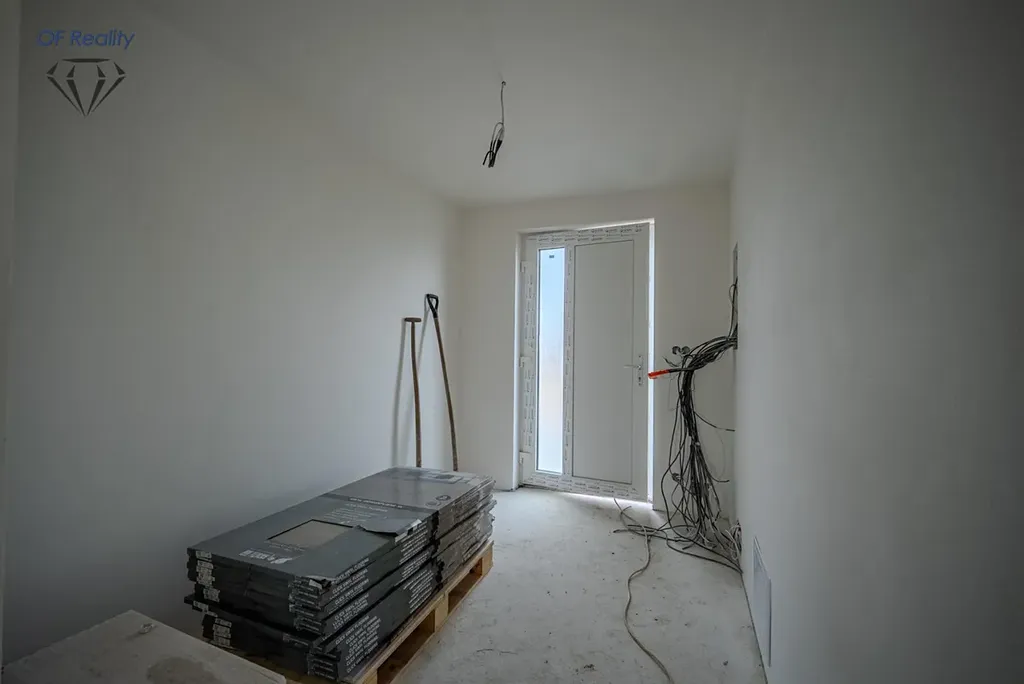 Nabízená nemovitostje ve fázi před dokončením. V současné době probíhá pokládka podlah, dlažeb a instalace koupelny.