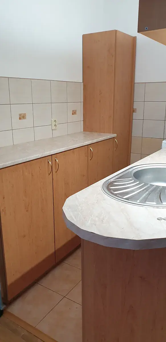 Obývací pokoj je propojený s kuchyňským koutem, zde je nová prostorná linka se sporákem, potravinová skříň.