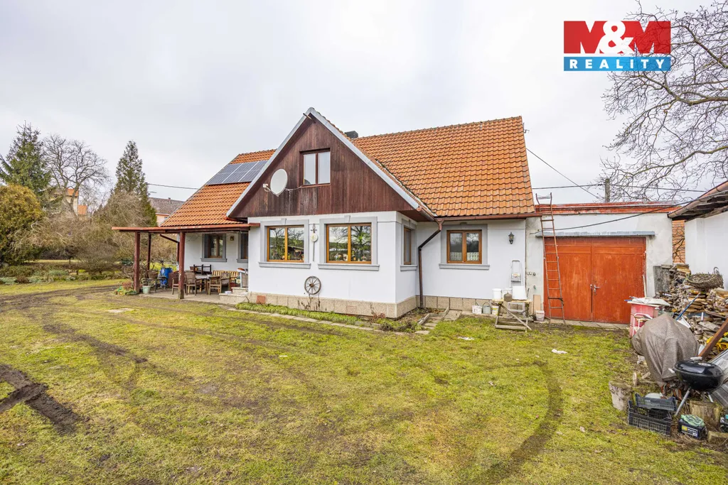 Hledáte prostorný, ale zároveň velmi útulný rodinný dům v klidné části obce Snědovice - Strachaly. Tento samostatně stojící dům s celkovou plochou cca 109 m² (+půdní prostor) je ideální volbou pro rodiny hledající klidné bydlení mimo ruch velkoměsta, navíc s dostatkem prostoru pro vlastní realizaci (pěstování, farmaření, apod) na rozlehlém pozemku o velikosti 3949 m², jež se nachází v zastavitelném území. Dům je ve velmi dobrém stavu, po většinové rekonstrukci, vhodný k okamžitému nastěhování, ale je zde prostor i pro další budování (celé podkrovní patro). Najdeme zde obývací pokoj, v němž jsou dominantou nádherná kachlová kamna, která vytápí celý objekt, dále dva samostatné pokoje, ložnici, koupelnu, WC, kuchyň a verandu. Konstrukce domu zajišťuje stabilitu a dlouhou životnost. Dále je zde garáž (19 m2) a stodola k dalšímu využití. Pokud hledáte klidné a prostorné bydlení v příjemné lokalitě, tento dům ve Strachalech je ideální volbou.