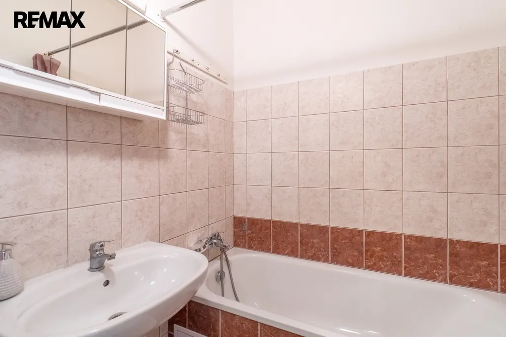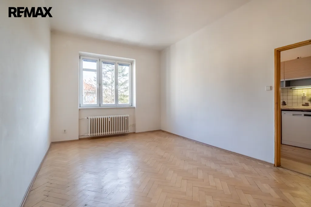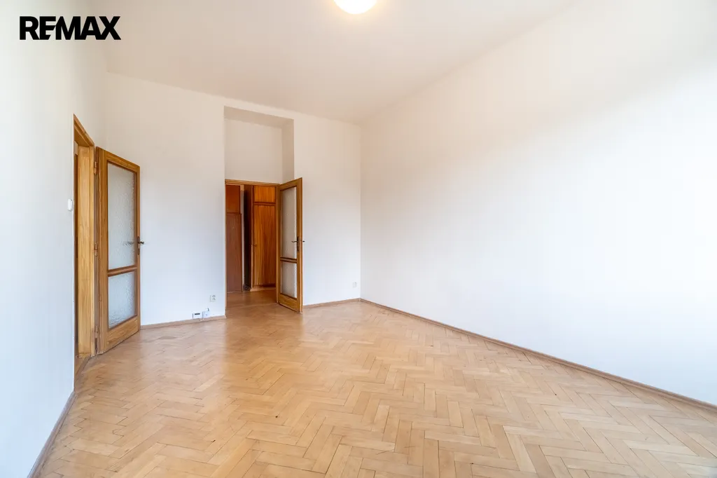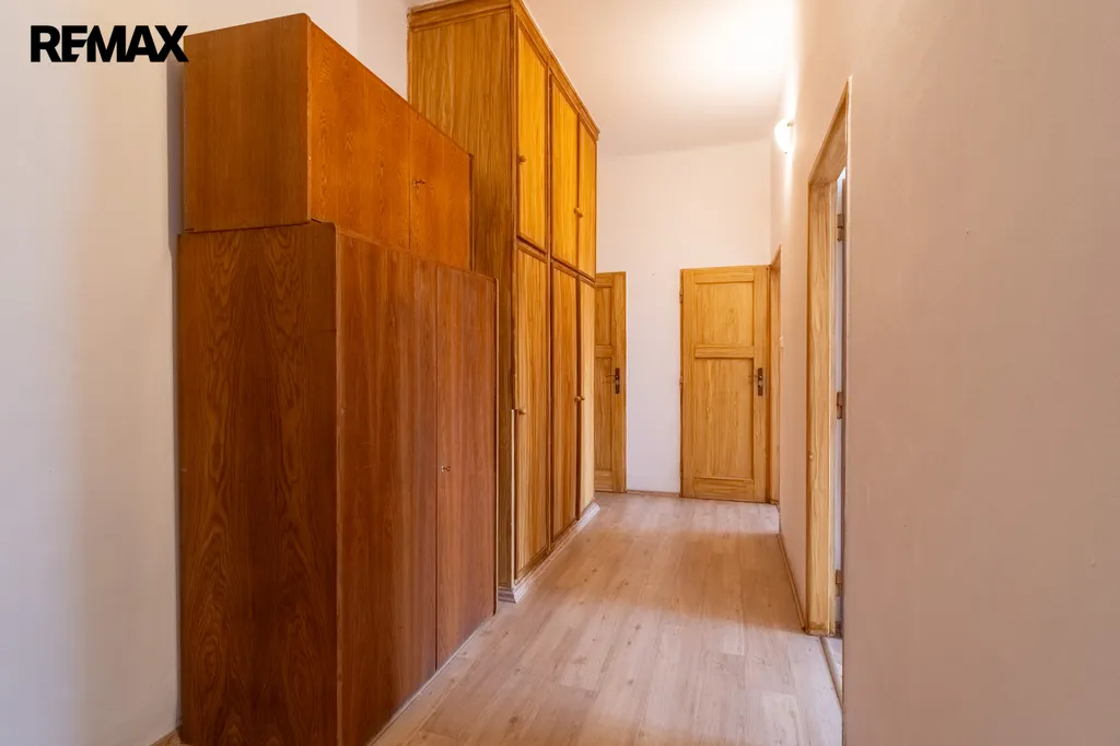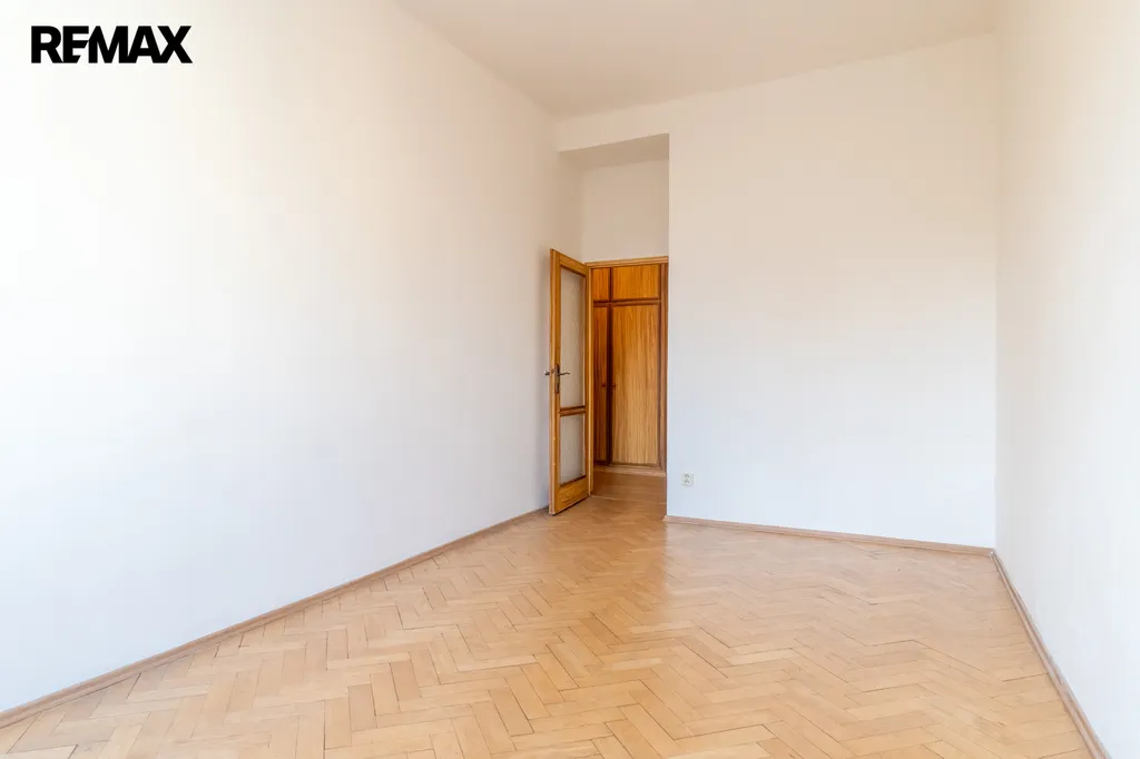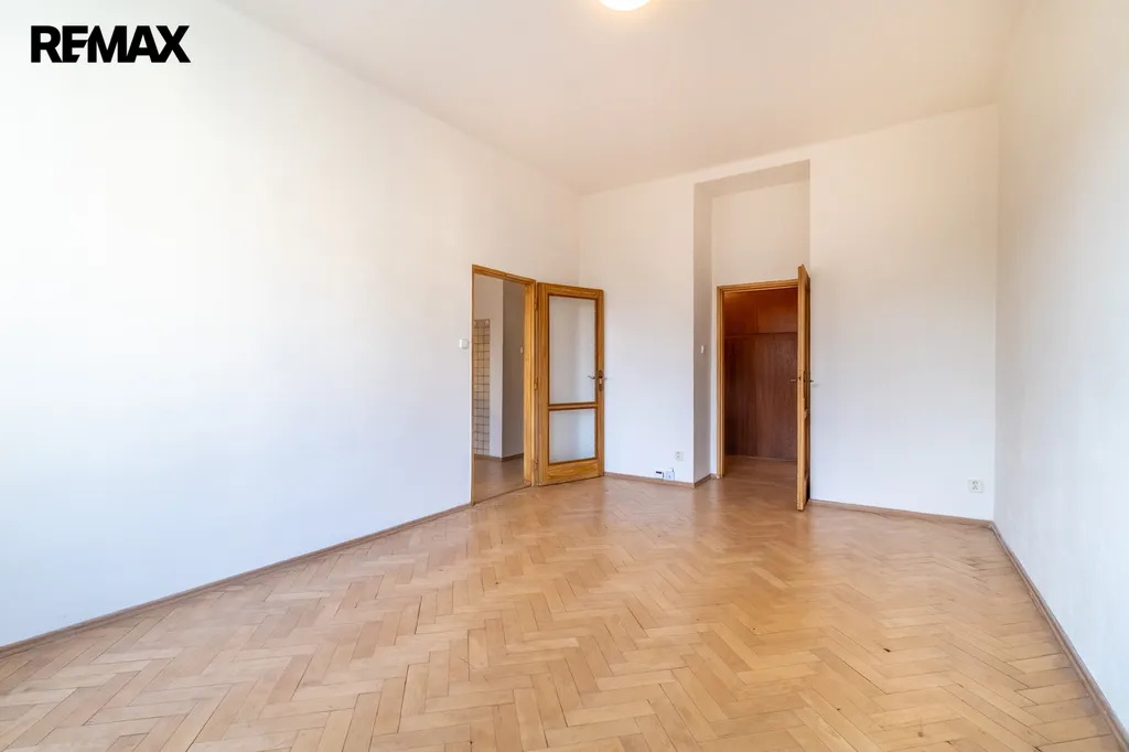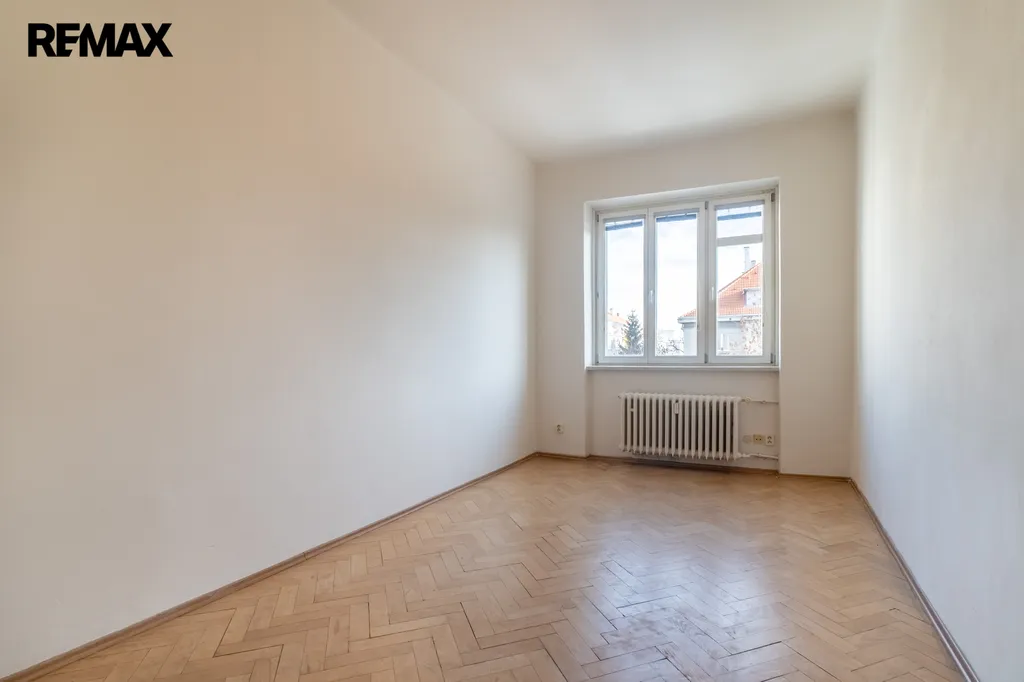 Toaleta je samostatná. V obytných pokojích jsou renovované parketové podlahy, které bytu dodávají příjemný charakter.