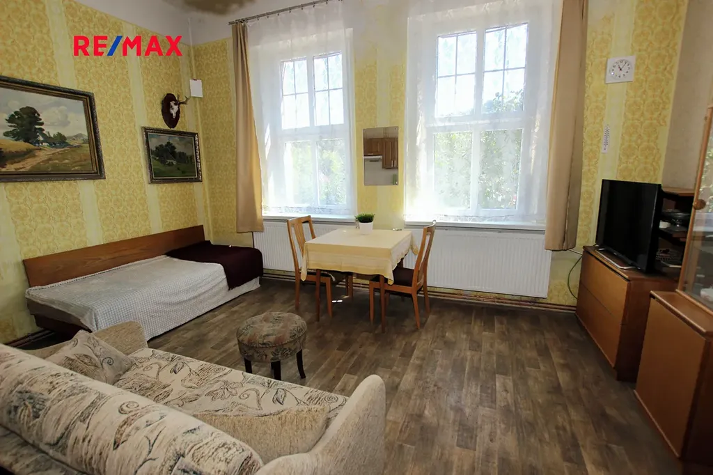 V přízemí domu je byt před rekonstrukcí o dvou pokojích, kuchyň, toaleta, koupelna, spíž a garáž. Dům je částečně podsklepen a je tu k dispozici technické zázemí domu.