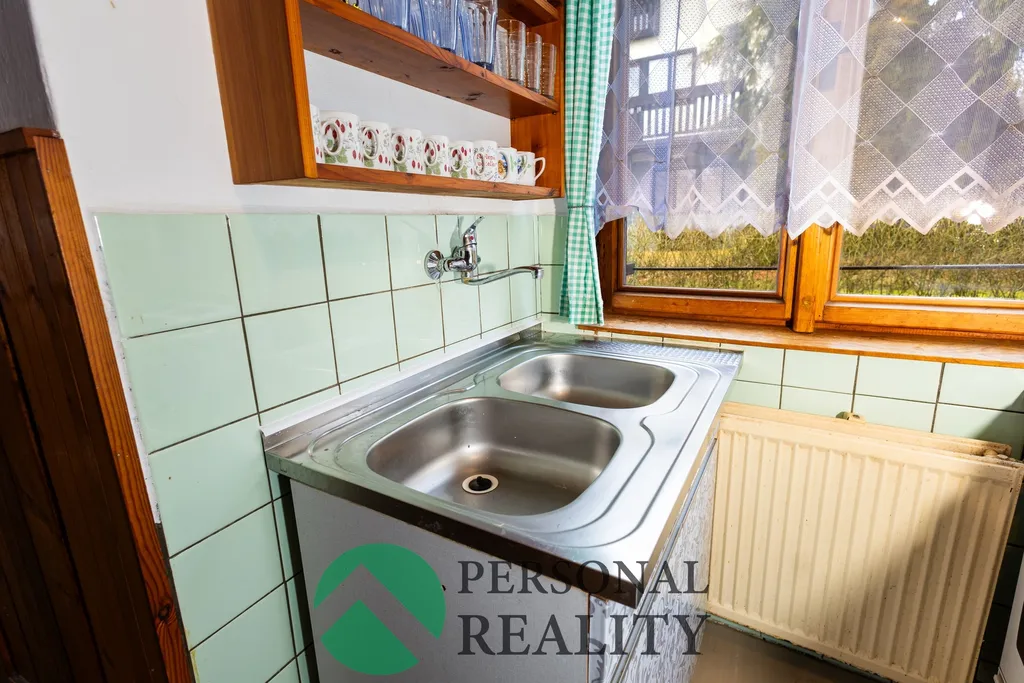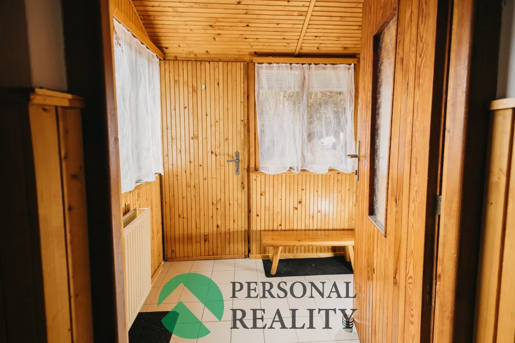 Ve spodní části chaty se nachází prostorná garáž a technická místnost, kde je kotel na tuhá paliva.