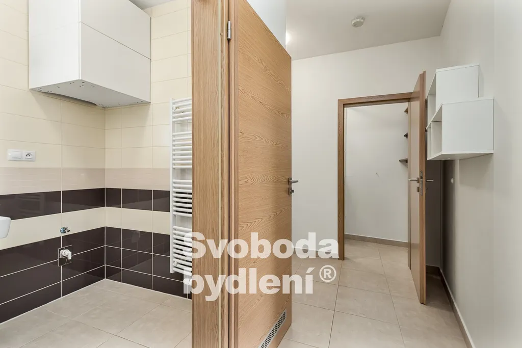 Západně orientovaný obývací pokoj s kuchyňským koutem i ložnice díky dostatečnému prosklení a vstupům na lodžii (cca 4,56m2) s pokračující zahrádkou (cca 37m2) navozuje vzdušný pocit otevřeného prostoru. Díky krajovému umístění bytu i zahrádky zde nalezneme větší soukromí. Moderní kuchyňská linka je vybavena el. vestavnou troubou, varnou deskou, myčkou a digestoří s odvětráním. Koupelna disponuje vanou, je zde prostor na pračku a sušičku. Množství úložných prostor poskytuje komora v bytě i zděná sklepní kóje v 1.PP.