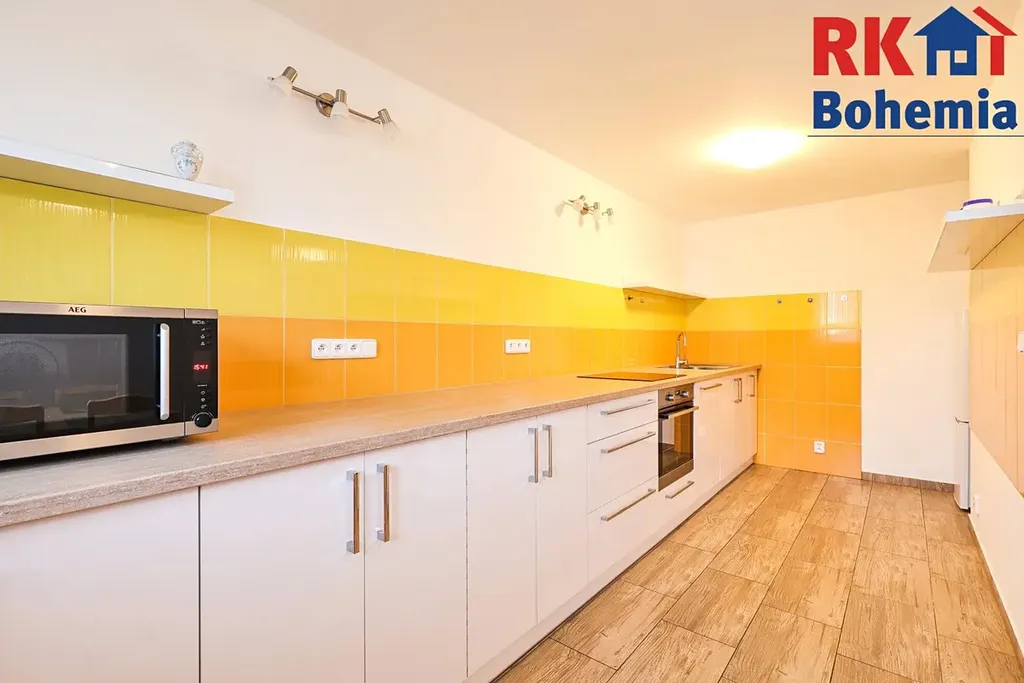 - Moderní kuchyňská linka se spotřebiči (sklokeramická deska, el. trouba, myčka), koupelna se zděným sprchovým koutem a pračkou.