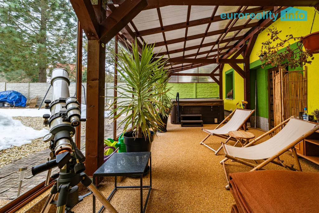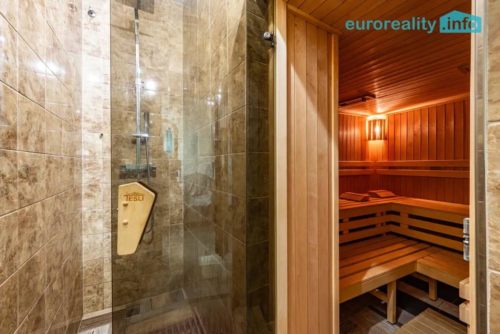 Celkem 6 plně vybavených pokojů s vlastním sociálním zařízením, možnost propojení do dispozice 2+1. Součástí je wellness zóna se saunou (6 osob), vířivkou (6 osob) a zimní zahradou (40 m²) dokončená v roce 2022.
