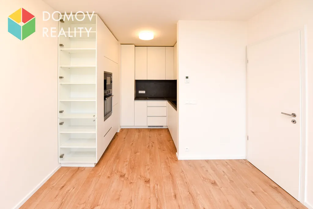 V bytě jsou velká, bílá plastová okna s elektrickými venkovními žaluziemi v antracitové barvě, kvalitní plovoucí podlahy a bílé vnitřní obložkové dveře.