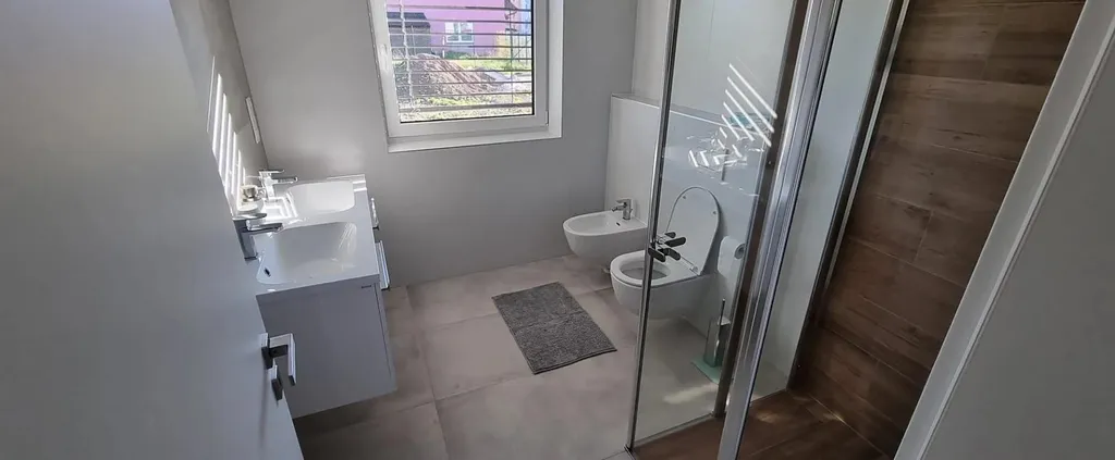 Dům je připojený na elektřinu (tři fáze), obecní vodovod (s retenční nádrží 5 m), obecní kanalizaci (dešťová i splašková). Vytápění domu prostřednictvím elektrického podlahového topení s chytrými termostaty v každé místnosti. Klimatizace je zavedena do každého pokoje, regulovatelné samostatně. Na střeše domu je zbudovaná fotovoltaika s výkonem 15 kWp a 4 bateriemi po 19 kW, které jsou celodenně nabíjeny. Podlahové krytiny jsou velkoformátové dlaždice ve všech místnostech, plastová okna v trojskle, vchodové dveře z hliníku. Na všech oknech jsou umístěny předokenní hliníkové žaluzie.