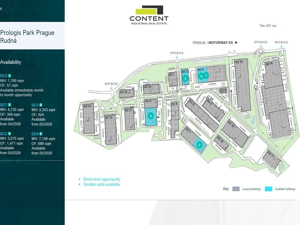 - jednotka o výměře 3434 m² v skladové budově třídy "A",