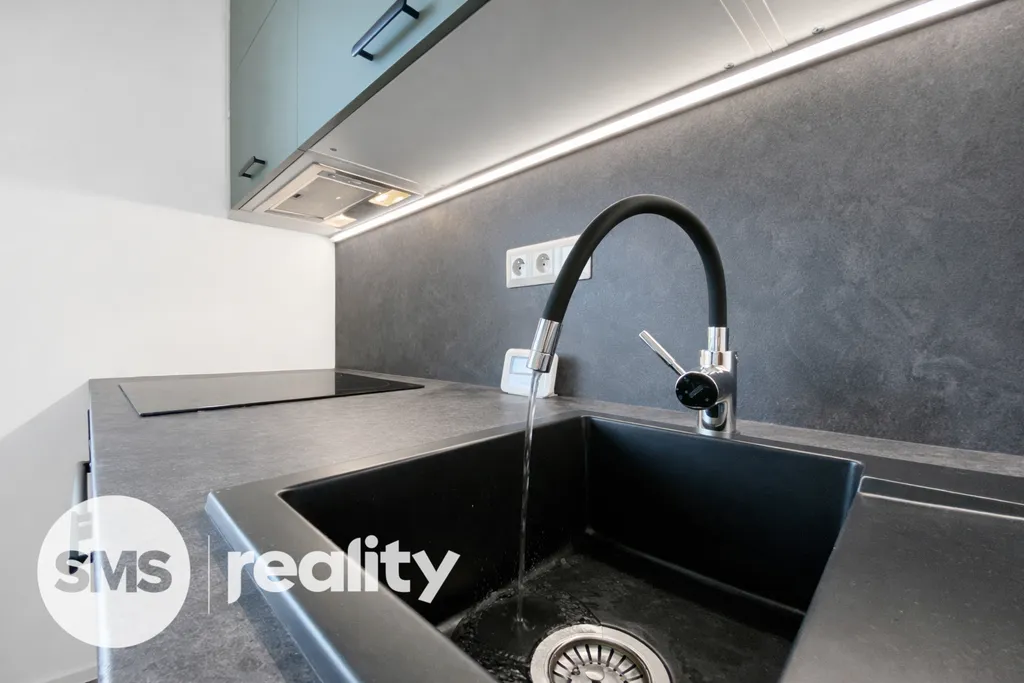 Dispozice bytu nabízí samostatnou kuchyň, obývací pokoj a ložnici. Kuchyňská linka je vybavena spotřebiči – myčka nádobí, indukční varná deska, trouba a digestoř. Koupelna disponuje sprchovým koutem, toaletní skříňkou a pračkou.