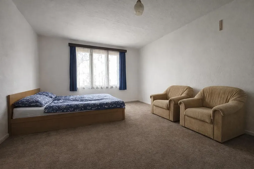 Dispozice domu je rozložena do dvou podlaží, což umožňuje praktické oddělení denní a klidové části. Díky stávající konstrukci lze dům modernizovat a přizpůsobit současným nárokům na komfortní rodinné bydlení. Velký pozemek poskytuje dostatek soukromí i prostoru pro parkování, případně další rozšíření stavby.