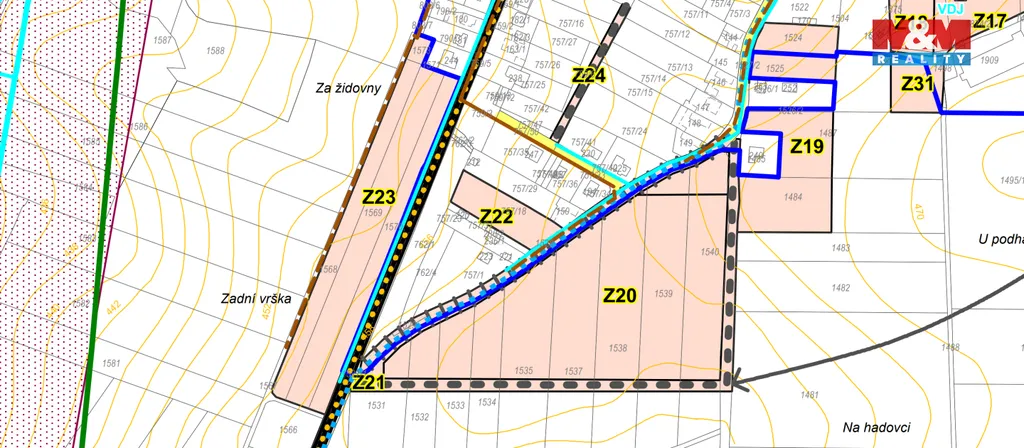 Nabízíme k prodeji stavební pozemek v obci Myslkovice, který je přístupný přímo z obecní komunikace. Dle územního plánu je pozemek určen pro výstavbu rodinných domů (plocha Z23), takže je ideální jak pro vlastní bydlení, tak jako zajímavá investiční příležitost.