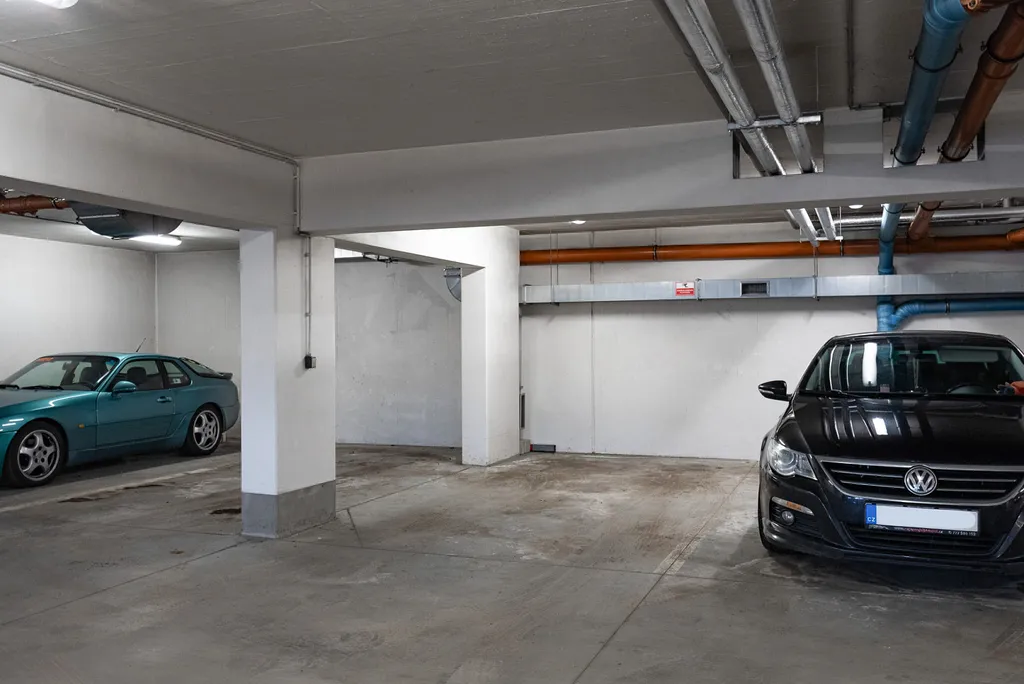 • K bytu náleží sklep na patře o velikosti cca 2,2 m² a parkovací stání v uzamykatelné garáži.