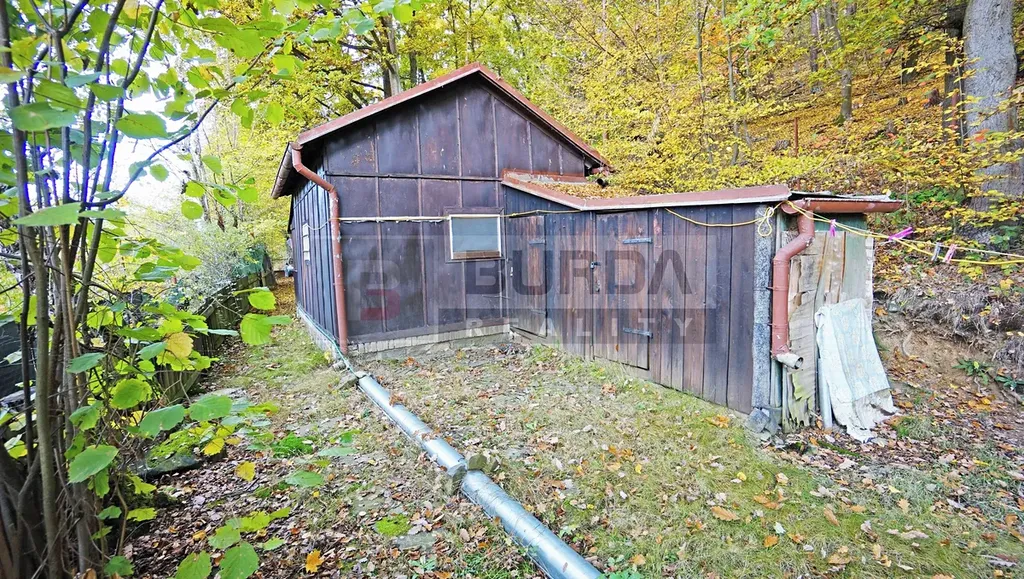 Na pozemku se nachází zastřešené parkovací stání, obytný přívěs, chata 2+1 a dvě kůlny za chatou.