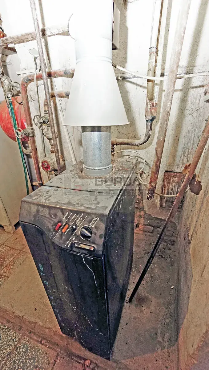 Hlavní uzávěr plynu je v oplocení a odtud je plyn přiveden do suterénu do letní kuchyňky ke sporáku a do kotelny k plynovému kotli Destila zaústěnému do komínu. Od kotle vedou rozvody k úzkým ocelovým žebrovaným radiátorům.