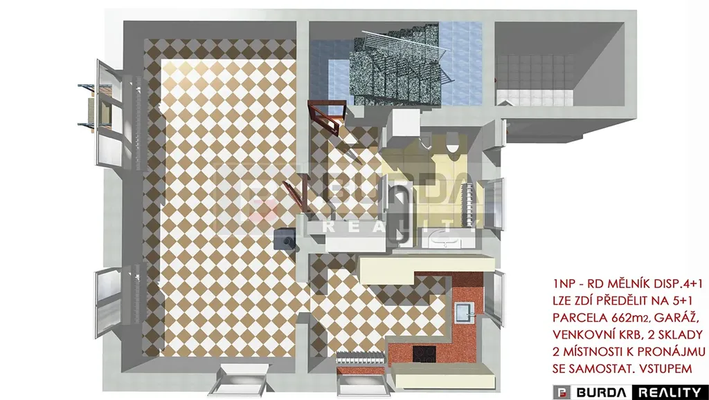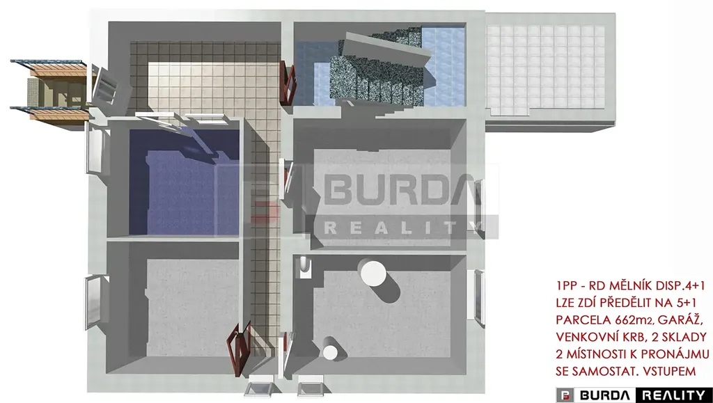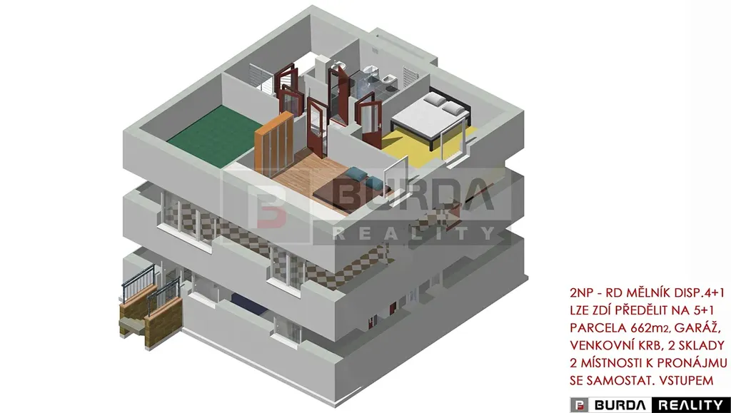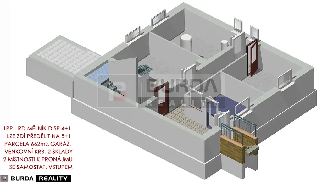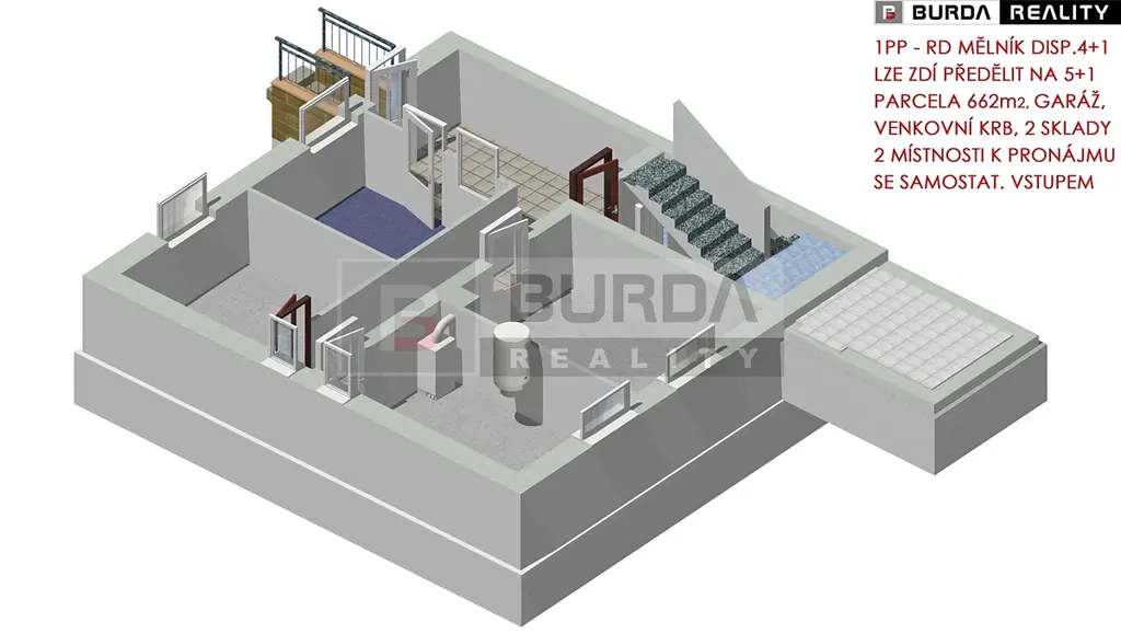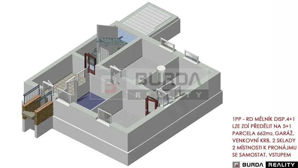 Jedná se o třípodlažní dům s velkým potenciálem ke skloubení rodinného bydlení s podnikáním v suterénu domu, nebo k pronajímání suterénního prostoru se samostatným vstupem z ulice (tento prostor není zkolaudován samostatně jako nebytový).