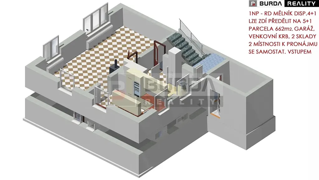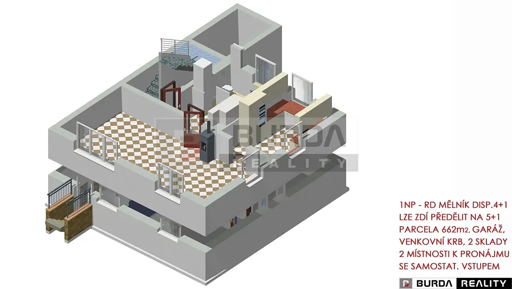 Exkluzivně Vám nabízíme k prodeji rodinný dům 4+1 se zahradou, s částečně podsklepenou garáží, s venkovním přístřeškem s krbem a se skladem nářadí s přilehlým dřevníkem v klidné části města Mělník.