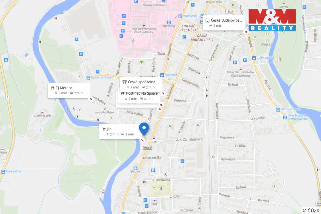 Z oken se otevírá nádherný výhled přímo na řeku Vltavu. Lokalita je ideální pro milovníky aktivního odpočinku i klidných procházek – jen pár kroků od domu se nachází Stecherův jez, vltavská cyklostezka a oblíbené trasy kolem řeky. Do centra města se pohodlně dostanete pěšky, na kole i MHD. V okolí je kompletní občanská vybavenost – školy, školky, obchody i nemocnice. Pokud vás nabídka zaujala, neváhejte nás kontaktovat.