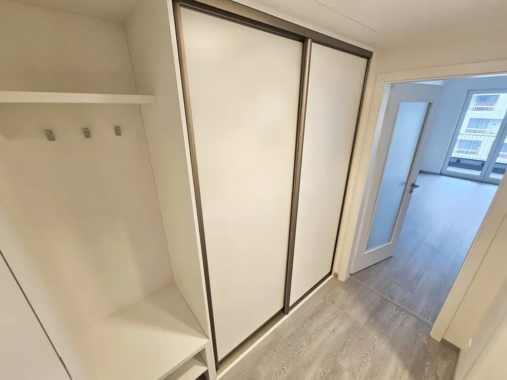V předsíni je velká vestavěná šatní skříň.