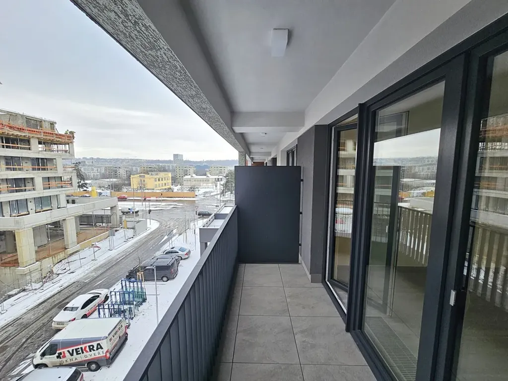 Nabízíme dlouhodobý pronájem nového bytu 1+kk/L (byt 32,8 m2 + lodžie 5 m2) ve 4. podlaží (2 výtahy) novostavby na Praze 9, Hloubětín, ulice Poděbradská.