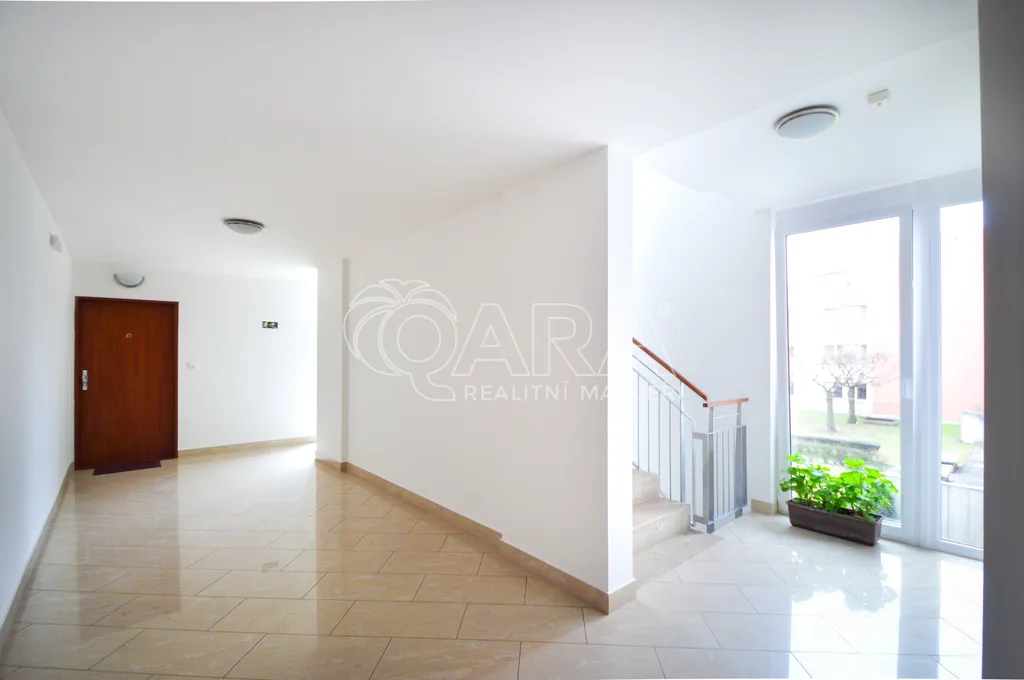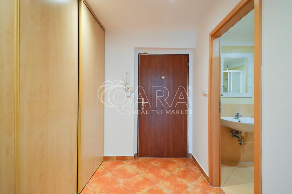 Byt nabízí prostornou předsíň s vestavěnou skříní. Ze které je vstup do pokoje s kuchyňským koutem a do koupelny se sprchovým koutem, toaletou a přípojkou na pračku. Byt je dále vybavený zabezpečovacím systémem a velkým množstvím zásuvek. Je krásně klidný a díky jižní orientaci a otevřenějšímu výhledu hezky světlý. Ve vnitrobloku celého domu je soukromá zahrada s posezením.