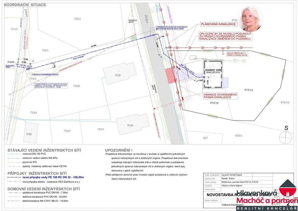 - kanalizace na hranici pozemku (viz plánek)