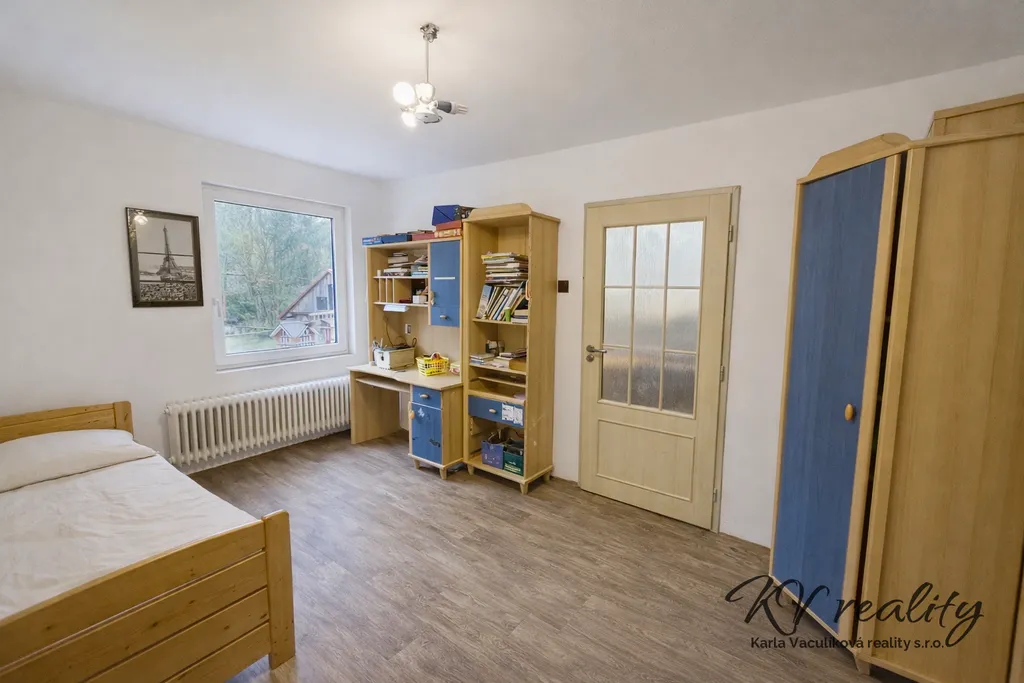 Ve výhradním zastoupení majitele nabízím k prodeji rodinný dům 6+1 s pozemkem o CP 3 565 m2 v obci Růžďka č.p. 104. Obec je vzdálená 6 km od města Vsetín, 10 km Valašské Meziříčí, 2 km Bystřička. V obci je obecní úřad, pošta, základní a mateřská škola, dobré autobusové spojení do okolních měst a obcí. Dům se nachází na velmi klidném a krásném místě, po hranici pozemku teče potůček, menší část je lesík. Jedná se o zděný dům s jedním nadzemním podlažím a obytným podkrovím, Dům je napojen na vodovod z vlasní kopané studny, kanalizace je svedena do jímky na vyvážení, je částečně podsklepený, střecha sedlová, krytina bonnský šindel. Je možnost připojení na kanalizaci a obecní vodovod. V domě již byla započata rekonstrukci, nová plastová okna a vstupní dveře trojsklo, zdrojem vytápění a na ohřev vody je instalováno tepelné čerpadlo voda-vzduch, zateplení půdy foukanou izolací, nová koupelna a toaleta, částečně vyměněny podlahové krytiny. Jako náhradní zdroj topení je možné využít kamna na pevná paliva. V 1. NP najdeme vstupní chodbu, toaletu, koupelnu s vanou a sprchovým koutem, samostatný pokoj, kuchyně s jídelnou propojená s obývacím pokojem. Do podkroví vede betonové schodiště a zde jsou 4 pokoje, v jednom z nich je zavedena voda a odpady, nyní slouží jako kuchyně a lze jej využít také jako prostornou koupelnu. Na pozemku se nachází dřevěná dílna ve velmi dobrém stavu. Příjezd je po obecní, asfaltové silnici. Doporučuji prohlídku, dům je vhodný pro klienty, kteří vyhledávají klid a blízkost přírody, je zde možnost chovu domácích zvířat. V případě zájmu zajistíme výhodné financování vlastním partnerem.