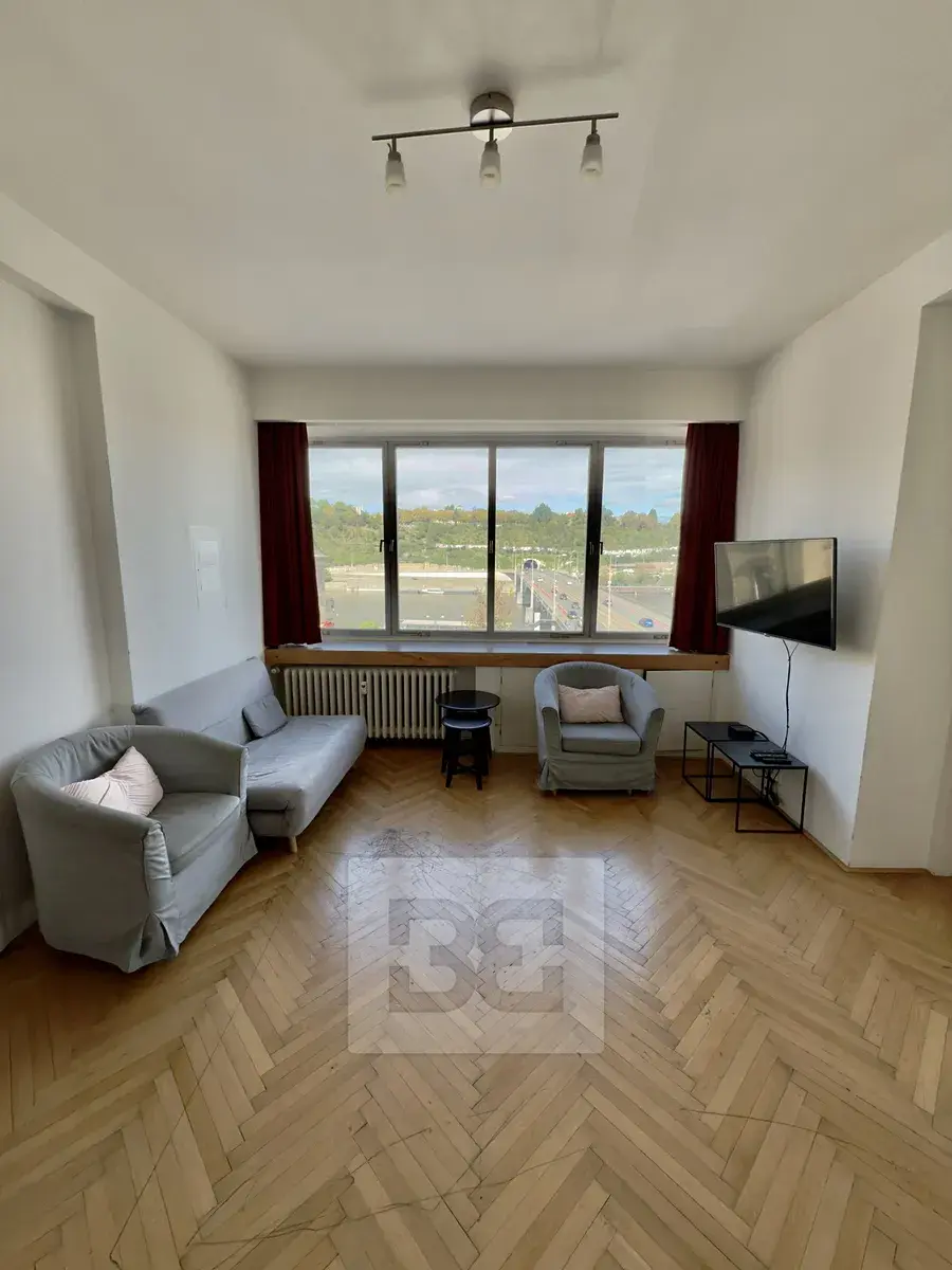 Nabízíme Vám k pronájmu byt 3+1 s obytnou plochou 82 m², situovaný v 5.NP domu s výtahem, v ulici Revoluční. Byt se sestává ze vstupní chodby, koupelny se sprchovým koutem a toaletou, kuchyně vybavené varnou deskou, mikrovlnou troubou, myčkou nádobí a lednicí s mrazákem, obývacího pokoje, ložnice, ke které přiléhá druhá koupelna se sprchovým koutem, toaletou a bidetem a druhého pokoje. Výhled z oken pokojů na řeku Vltavu.