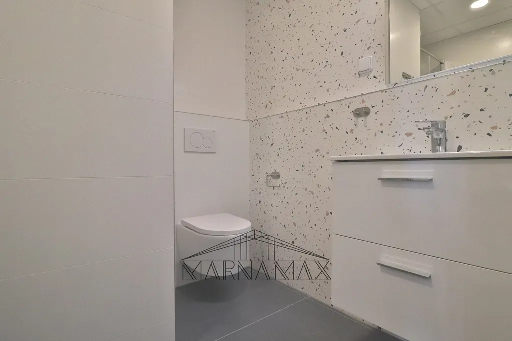 Byt disponuje rohovou kuchyňskou linkou vybavenou myčkou nádobí, digestoří a elektrickým sporákem. Součástí vybavení je také lednice s mrazákem a pračka se sušičkou. Rekonstrukce byla provedena ve velmi vkusném a moderním stylu, který poskytuje příjemné a komfortní bydlení.