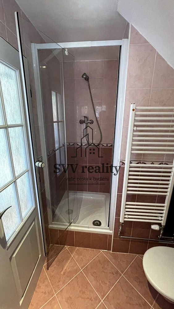 Byt o podlahové ploše 36 m² se skládá z předsíně, koupelnou se sprchovým koutem, pračkou, umyvadlem a WC, elektrický žebřík a topná rohož.