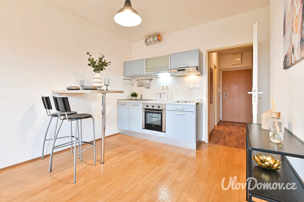 Byt se prodává nevybavený. Součástí je moderní kuchyňská linka s elektrickou troubou, sklokeramickou varnou deskou (dvouplotýnka), digestoří a nerezovým dřezem. Kuchyňský kout je doplněn o praktický barový pult s místem k sezení. Součástí vybavení je i pračka.
