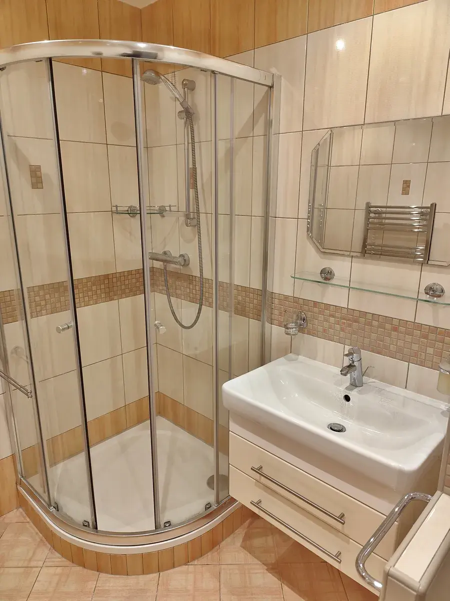 Byt disponuje vstupní předsíní s komorou, která je ideální na uskladnění věcí a vstup do koupelny, které je vybavena sprchovým koutem, umyvadlem, toaletou a prostorem pro pračku, dále je z předsíně vstup do kuchyně s kuchyňskou linkou, kombi sporákem a jídelním koutem a dva prostorné pokoje (jeden pokoj má balkón) situované na východ. Výhled z kuchyně nabízí pohled na Ještěd a místní přehradu.