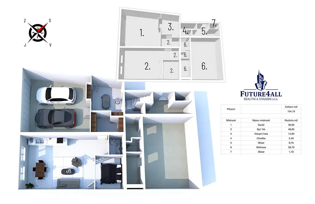 V přízemí se nachází zcela oddělená bytová jednotka, vhodná pro rodiče či jako investiční příležitost k pronájmu. Zároveň je zde možnost vybudování další samostatné jednotky, což významně zvyšuje flexibilitu prostoru i jeho finanční potenciál.