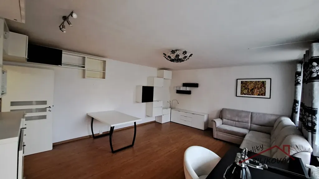 V ložnici vestavěné skříně, dvoulůžko bez matrací. V kuchyni kuch. linka s volně stojícími spotřebiči (lednice, kombinovaný sporák).