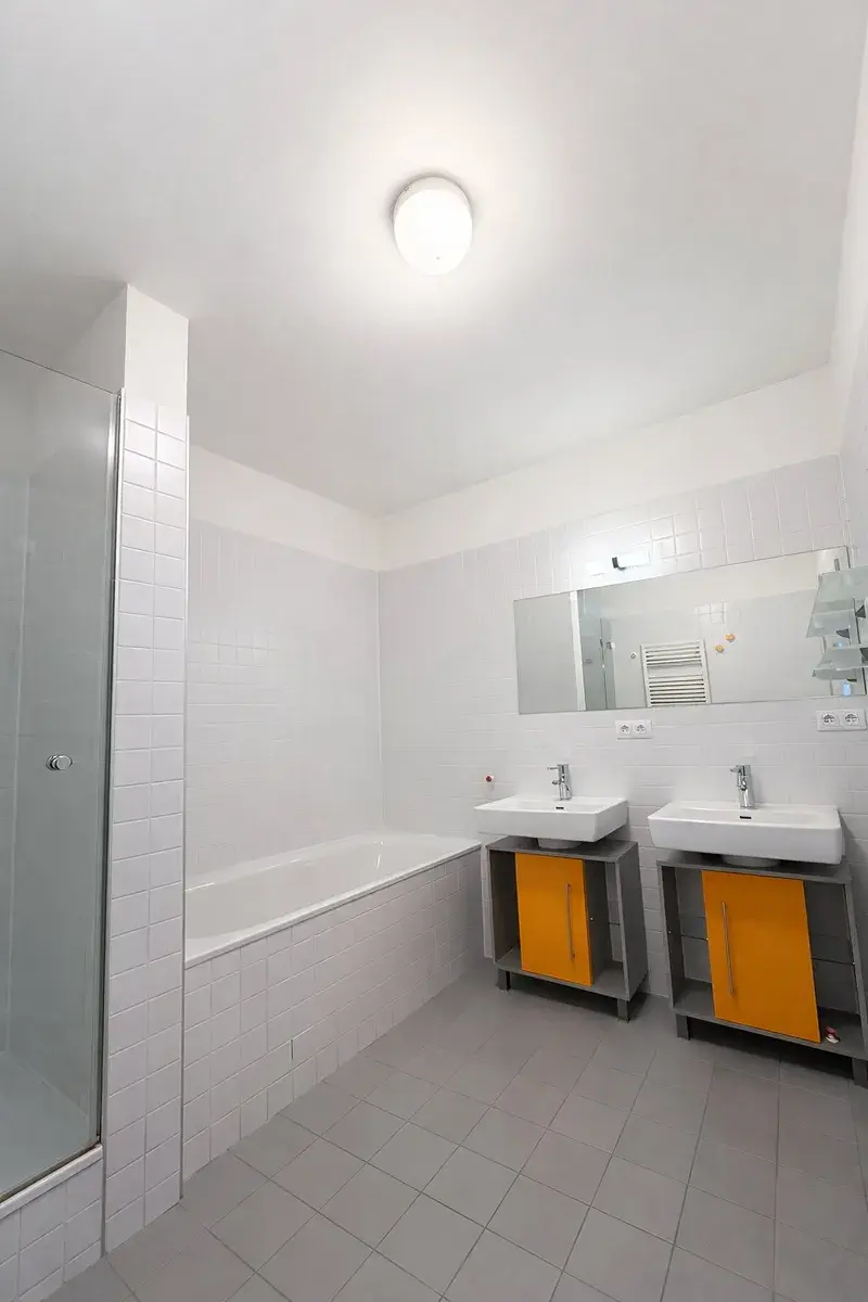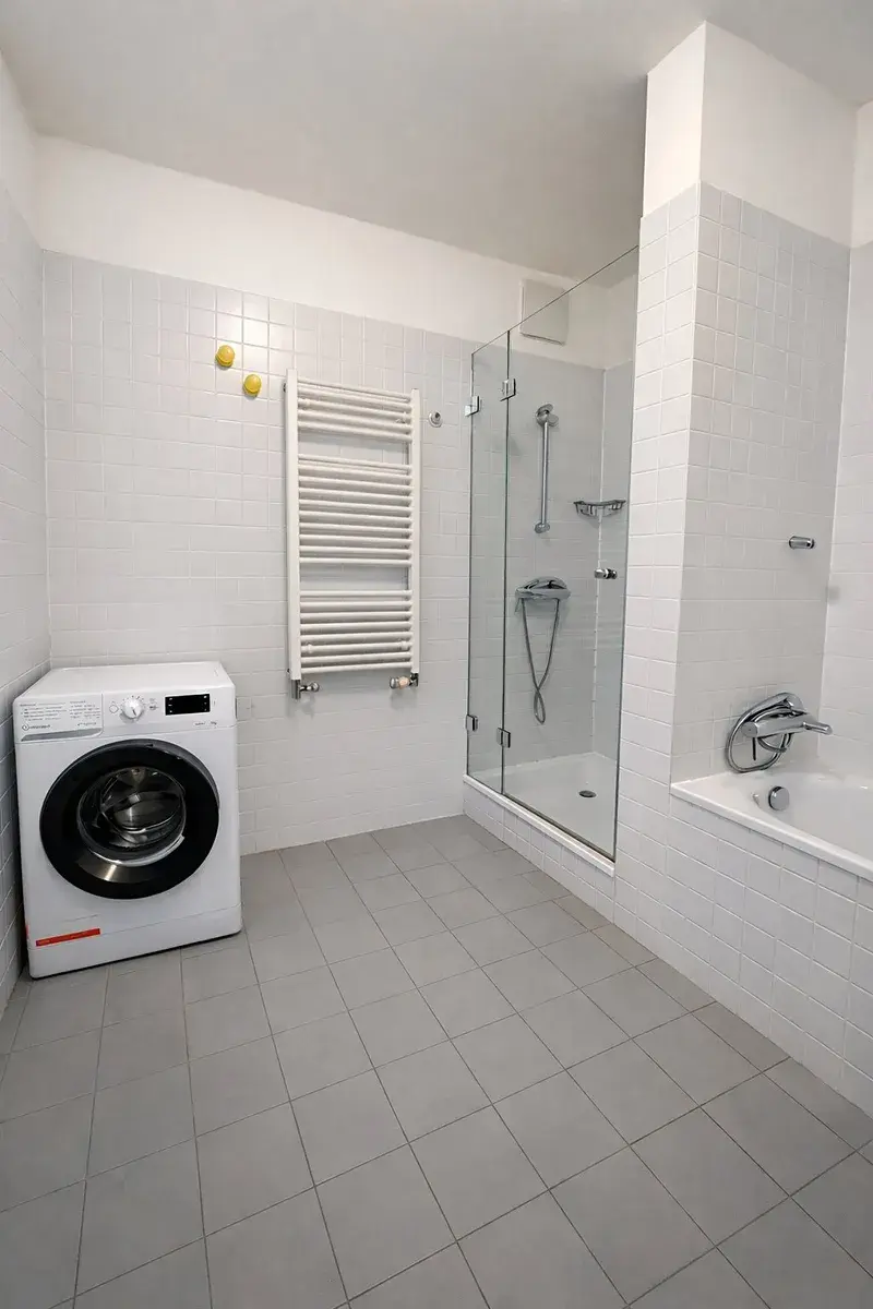 Byt nabízí příjemný výhled do vnitrobloku a kvalitní standardy: dřevěná plovoucí podlaha, velkoformátová dlažba, vestavěné skříně, francouzská okna, vnitřní rolety a centrální vytápění. K dispozici jsou pračka, myčka a sklepní kóje.