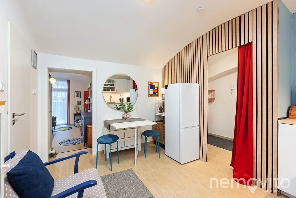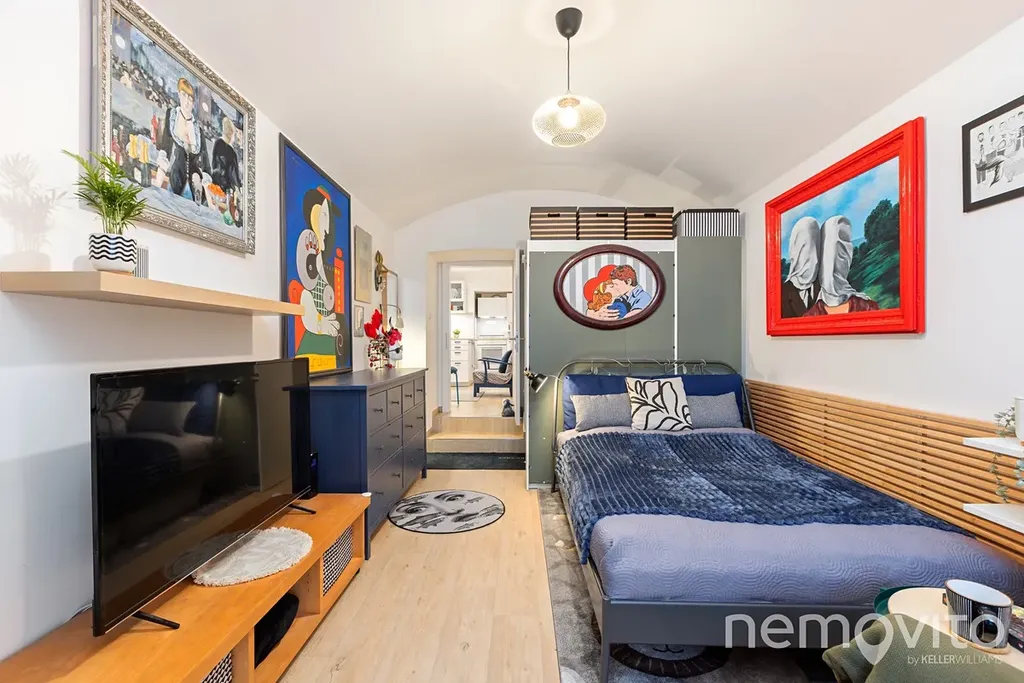 Atelier 2+1 s příjemnou západně orientovanou teráskou a velkými okny do dvora, tedy zcela mimo provoz a ruch. Ateliér s klenutými stropy je umístěn o půl úrovně pod dvorem, do kterého má orientovaný výhled. Kompletní rekonstrukcí prošel v roce 2024 a je plně vybavený, funkční a bez investic.