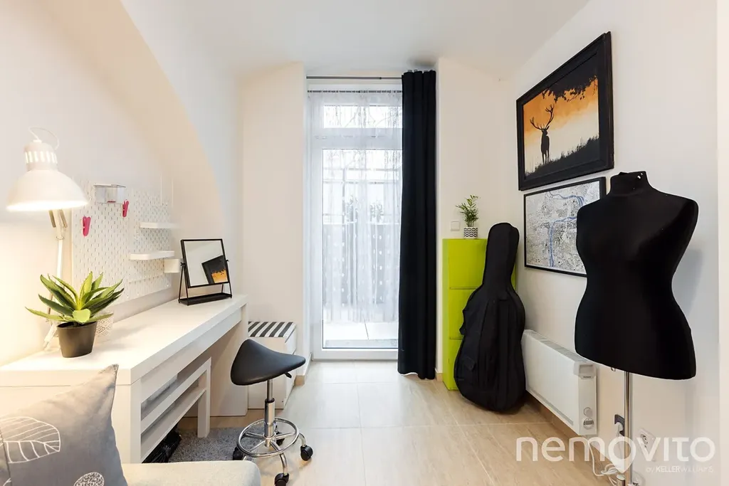 Na ploše přes 50 m2 nabízí celkem 3 místnosti a především 10 m2 venku na terase, na kterou je výstup z obou pokojů. Ty jsou vysoké (2,8 metru), s kompletně novou skladbou podlah a o velikostech 17 a 13 m. Ač se jedná o nebytovou jednotku, na první pohled není ateliér ničím znevýhodněn proti klasice.|