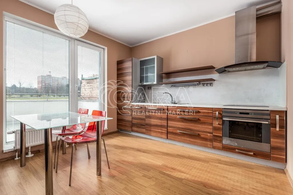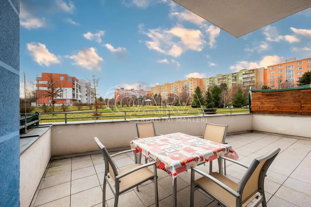 Pronájem hezkého, částečně vybaveného bytu o dispozici 1+kk s velkou terasou a garážovým stáním v klidné lokalitě na Praze 9 - Letňanech v ulici Chlebovická.